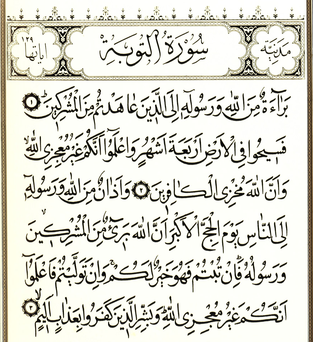 - وإذا رأى الشخص في المنام أنه يقوم بكتابة سورة التوبة فهذا دليل على زواج هذا الشخص وإتمام عقد قرانه في وقت قريب وتحذير له بالإبتعاد عن ارتكاب الذنوب والمعاصي والعيش في حياة هادئة ومستقرة.