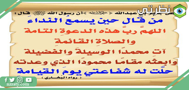 - النبي ﷺ أوصى بذلك قال: إذا سمعتم المؤذن فقولوا مثلما يقول ثم صلوا علي فإنه من صلى علي واحدة صلى الله عليه بها عشرًا ثم سلوا الله لي الوسيلة؛ فإنها منزلة في الجنة لا تنبغي إلا لعبد من عباد الله وأرجو أن أكون أنا هو، فمن سأل الله لي الوسيلة حلت له الشفاعة هذا السنة، وقال: من قال حين يسمع النداء: اللهم رب هذه الدعوة التامة والصلاة القائمة، آت محمدًا الوسيلة والفضيلة، وابعثه مقام محمودًا الذي وعدته؛ حلت له شفاعتي يوم القيامة.