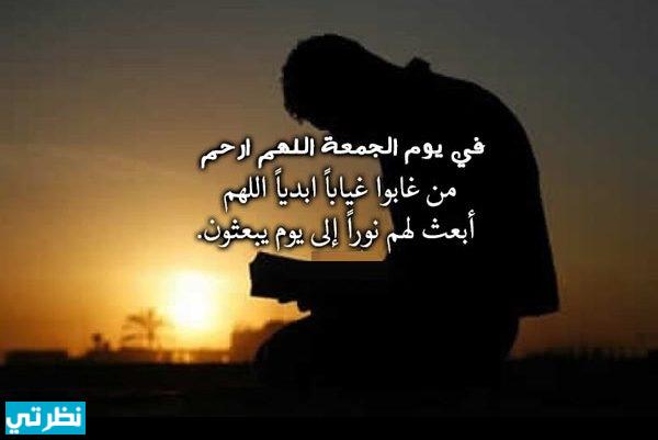 - اللهم في يوم الجمعة ارحم من غابوا غيابا أبديا، اللهم ابعث لهم نورا إلى يوم يبعثون، اللهم في يوم الجمعة أذق- (نقول اسم المتوفى)- الجنة ونعيمها، والفردوس وبرادها، اللهم اجعل له كنوزا وبيوتا في جنتك، وارحمه برحمتك يا أرحم الراحمين.