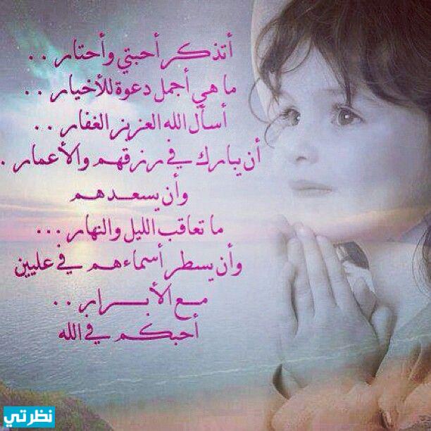 اللهم أرح قلبهم بلطف عفوك و حلاوة حبك، و أعمر أيامهم بذكرك، و أحفظهم و احفظ عليهم دينهم، وأسعد قلوبهم دائمًا. أسأل الله لك راحة تملأ نفسك، ورضا يغمر قلبك، وعملًا يرضي ربك، وسعادة تعلو وجهك، ونصرًا يقهر عدوّك، وذكرًا يشغل وقتك، وعفوًا يغسل ذنبك، وفرجًا يمحو همك. يا رب أحببته فيك، يارب، أحفظه عن معاصيك، يارب أجعل عمره فيما يرضيك، يارب أكرمه يوم يلاقيك، يارب ثبته في الدنيا على الدين، و أبعثه يوم الآخرة من أهل اليمين. جعلك الله ممن تتهلل وجوههم يوم الدين فرحان بالجنان و رؤية الرحمن.