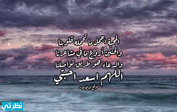 اللهم لنا أحباب بالبسمة نحبهم، بالود نذكرهم، بالشوق نراسلهم، بظهر الغيب ندعو لهم، في القلب والروح نحتفظ بهم، فيارب احفظهم واجعلني وإياهم في جنة الخلد نلتقي. أسأل الله أن يعطيك أنفع الكتب، أسأل الله أن يجمعك بأبر خلق الله رسول الله، أسأل الله ان يغمرك باحلى مافي الدنيا “ذكر الله”، اسأل الله ان يطيب اخرتك، اسأل الله ان يعطيك احلى مافي الجنه “رؤيته عز جلاله وملكه وعظمته. اللهم إنك تعلم أنهم أحباب قلب وأصحاب درب فبلغهم مني كل الحب وأدم إلهي بيننا حبل الود. اللهم ارزقنا وإياهم مغفرة بلا عذاب وجنة بلا حساب ودعاء مستجاب لكم من القلب أخلص الدعاء، ومن الجمعة نور وضياء، وأن تملأ حسناتكم مابين الأرض والسماء. اللهم أفرح برحمتك قلبا أحبه، واذهب بكرمك حزنه وهمه، واغفر بجودك ماكان من ذنبه، ونور بالقرآن والغفران قلبه، واستره في الدنيا والآخرة. اللهم لنا أحباب بالبسمة نحبهم، بالود نذكرهم، بالشوق نراسلهم، بظهر الغيب ندعو لهم، وفي القلب والروح نحتفظ بهم، ف يارب احفظهم واجعلني وإياهم في جنة الخلد نلتقي. ملأ الله قلبكم حمدًا، وكتب لكم في قلوب العباد ودًا، وأمدكم من فضله في الرزق مدًا، ولا يسلط عليكم من أهل السوء أحدًا. “اللهم إنك تعلم أنهم أحباب قلبي، وأصحاب دربي، فبلغهم مني كل الحب، وأدم إلهي بيننا حبل الود، اللهم ارزقنا وإياهم مغفرة بلا عذاب، وجنة بلا حساب ودعاء مستجاب”. الجمعة خير الأيام وأنتم خير الأحباب، أدام الله بيننا المودة، ولكم من القلب أخلص الدعاء، ومن الجمعة نور وضاء، وأن تملأ حسناتكم مابين الأرض والسماء.