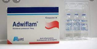 - أدويفلام حقن لكل 3 مللي علي 75 مجم ديكلوفيناك البوتاسيوم.