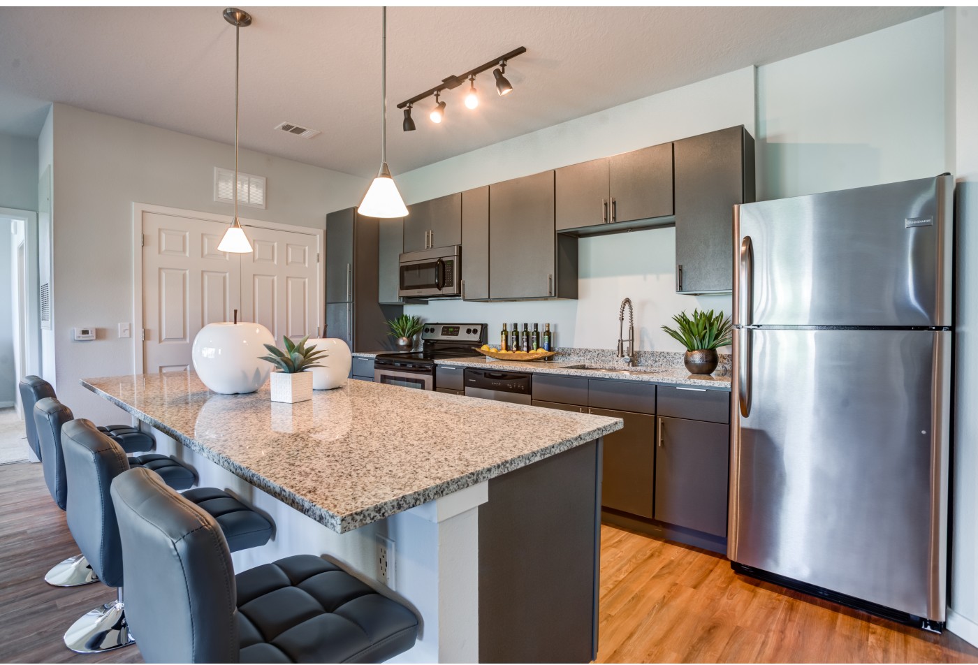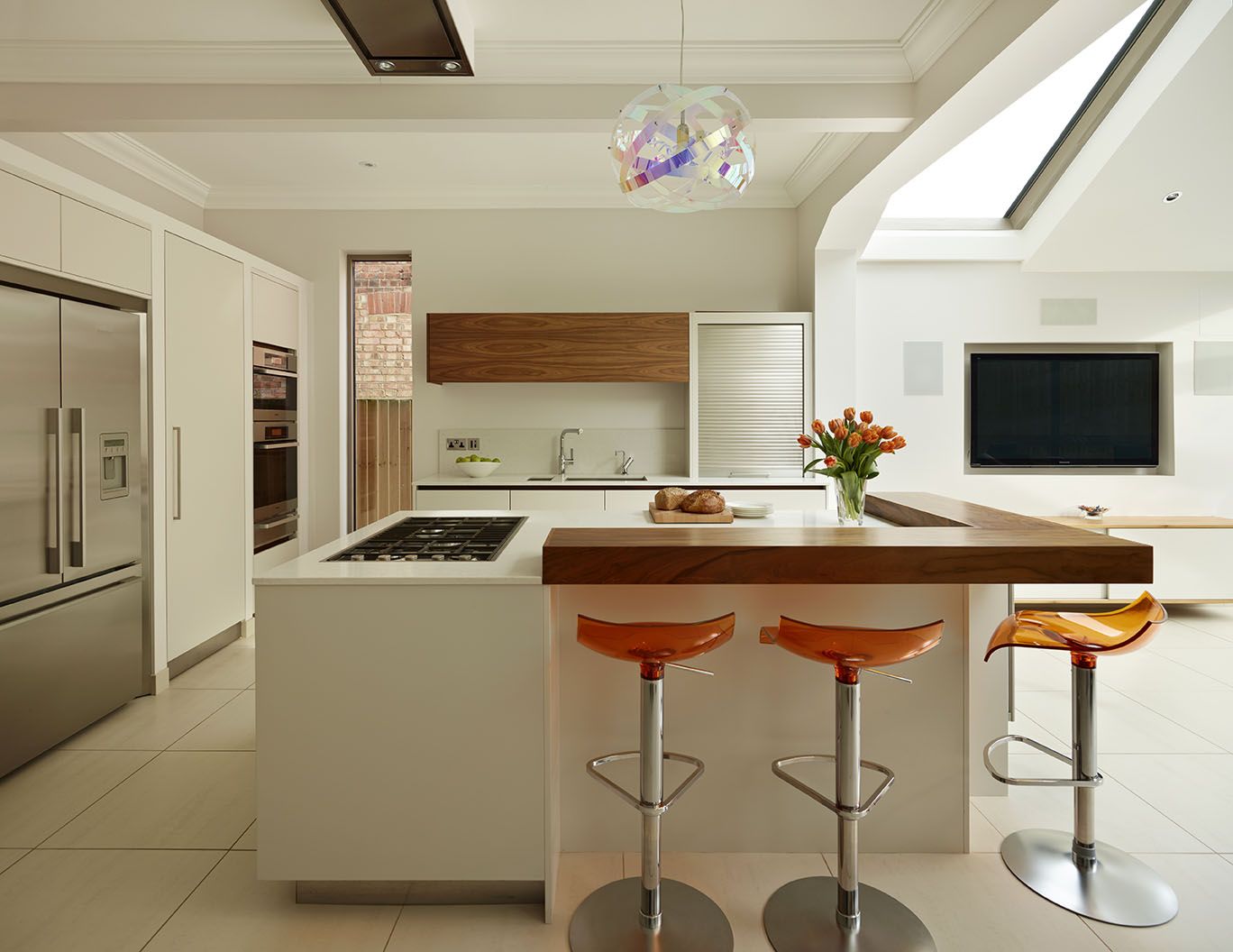 إنشاء تصميم يستغل المساحة المتاحة لخلق تناسب مثالي في المطبخ، من خلال استخدام الجدران لتثبيت العناصر التي تتطلب عملاً مستمراً في المطبخ، مثل الأحواض والخزائن، بالإضافة إلى تقسيم الجزيرة الوسطى للموقد للتقليل من الازدحام في الجهة الأخري، مع استخدام نفس لون الجدران والأرضيات للجزيرة في المنتصف، لتوفير علاقة متناغمة بين الرواق والغرف الأخرى في الطريق المؤدي للمطبخ.