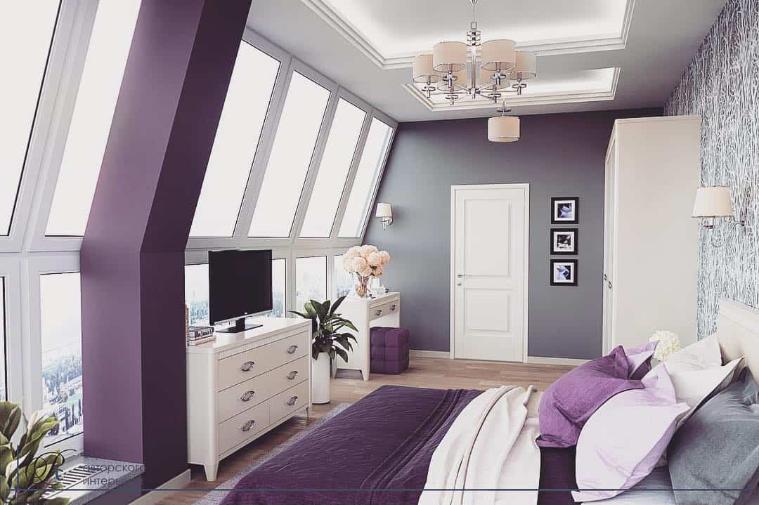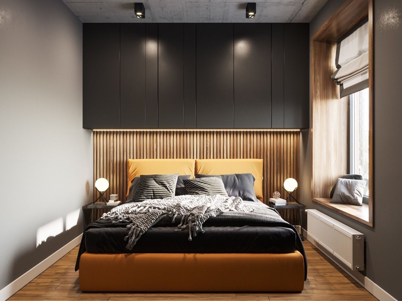 - اختيار ألوان تنبض بالحياة مثل الخطوط الصفراء على السقف، بخلاف اللون الرمادي فإنه يعبر عن التميز والرقة، وتستطيع وضع السرير في زاوية أحد الجدران، فهذا سيمنحك شيئًا من الخصوصية والاسترخاء.
