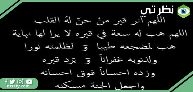 اللهمّ اجعل قبره روضةً من رياض الجنّة، ولا تجعله حفرةً من حفر النّار. اللهمّ افسح له في قبره مدّ بصره، وافرش قبره من فراش الجنّة.