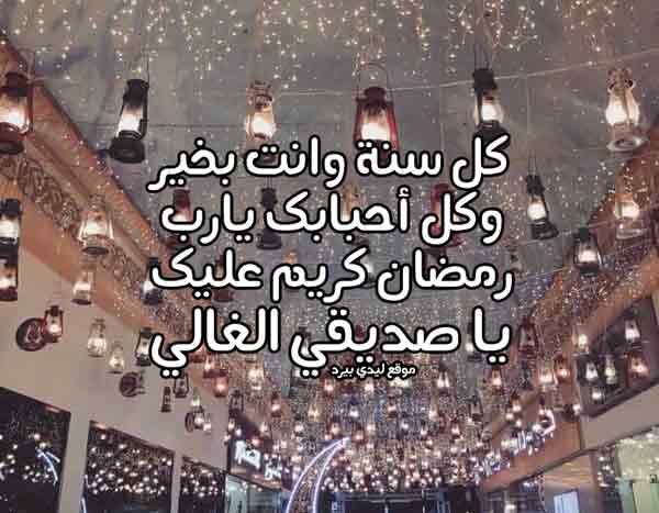 - هلّ هلال شهر الخير، ومن قلبي أدعي لك يا الغالي بكل الخير، وكل عام وكل رمضان وأنت والأهل بألف خير.