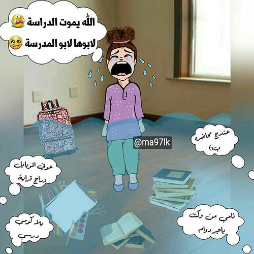 على بعض النكت والصور عن بداية الدراسة، ليقوموا الطلاب بنشرها ومشاركتها بعضهم مع بعض محاولة منهم استقبال العام الدراسي
