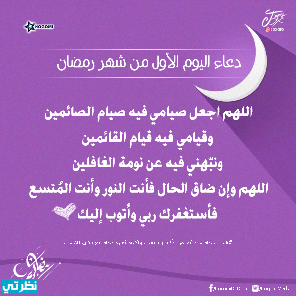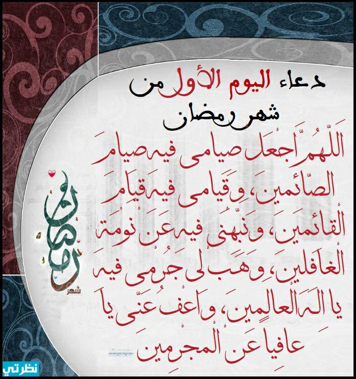 - اللهم اجعل صيامي فيه صيام الصائمين وقيامي فيه قيام القائمين، ونبهني فيه عَن نومة الغافلين، وهب لي جرمي فيه يا رب العالمين، واعف عني يا عافيًا عن المجرمين. اللهم اجعل صيامي فيهِ بالشّكر والقبول على ما ترضاه ويرضاهُ الرّسول محكمةً فروعه بالأصول، بحقّ سيّدنا محمدٍ وآله الطّاهرين، والحمد لله ربّ العالمين. يارب في خير شهر وخير أيام تفضلت فيها على عبادك أن تهديني هداية لا ضلال بعدها، وأن تثبتني على الطاعة وتكفيني بعزتك وقدرتك التي لا تنضب ولا تحرم منها أحدًا شر أربع مغريات للنفوس الدنيا والهوى والشيطان والنفس أمارة السوء، اللهم ارزقني حسن العود والرجوع. اللهم في شهرك الكريم وسائر الأشهر ارزقنا إطعام المساكين ورحمة اليتيم والعطف على المسكين، واكفنا بعزتك الغلاء والوباء والإعراض عن طاعتك، سبحانك أنت الحق وقولك الحق وأنبيائك حق وجنتك وعذابك حق لا إله إلا أنت.