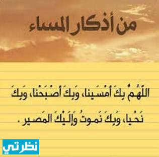 أمسينا و أمسى الملك لله، و الحمد لله، لا إله إلا الله وحده لا شريك له،له الملك و له الحمد وهو على كل شيءٍ قدير ، ربّ أسألك خير ما في هذه الليلة وخير ما بعدها، وأعوذ بك من شرّ هذه الليلة و شرّ ما بعدها ،ربّ أعوذ بك من الكسل وسوء الكبر، ربّ أعوذ بك من عذابٍ في النار وعذابٍ في القبر، من قال هذا الدعاء ثلاث مرات حين يُصبح وحين يمسي، كفاه الله شرّ كل شيء .