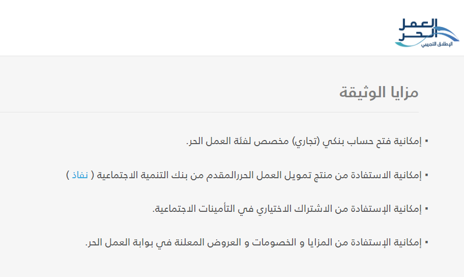 مزايا منتج نفاذ للتمويل العمل الحر من بنك التنمية الاجتماعية السعودي