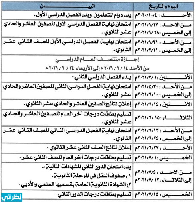 - يوم الاثنين الموافق ١/٣/٢٠٢١: بداية الفصل الدراسي الثاني.