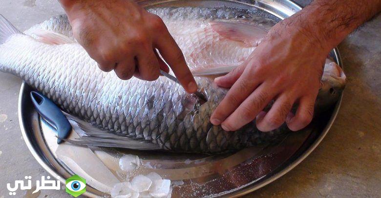 تنظيف السمك النيء في الحلم للحامل