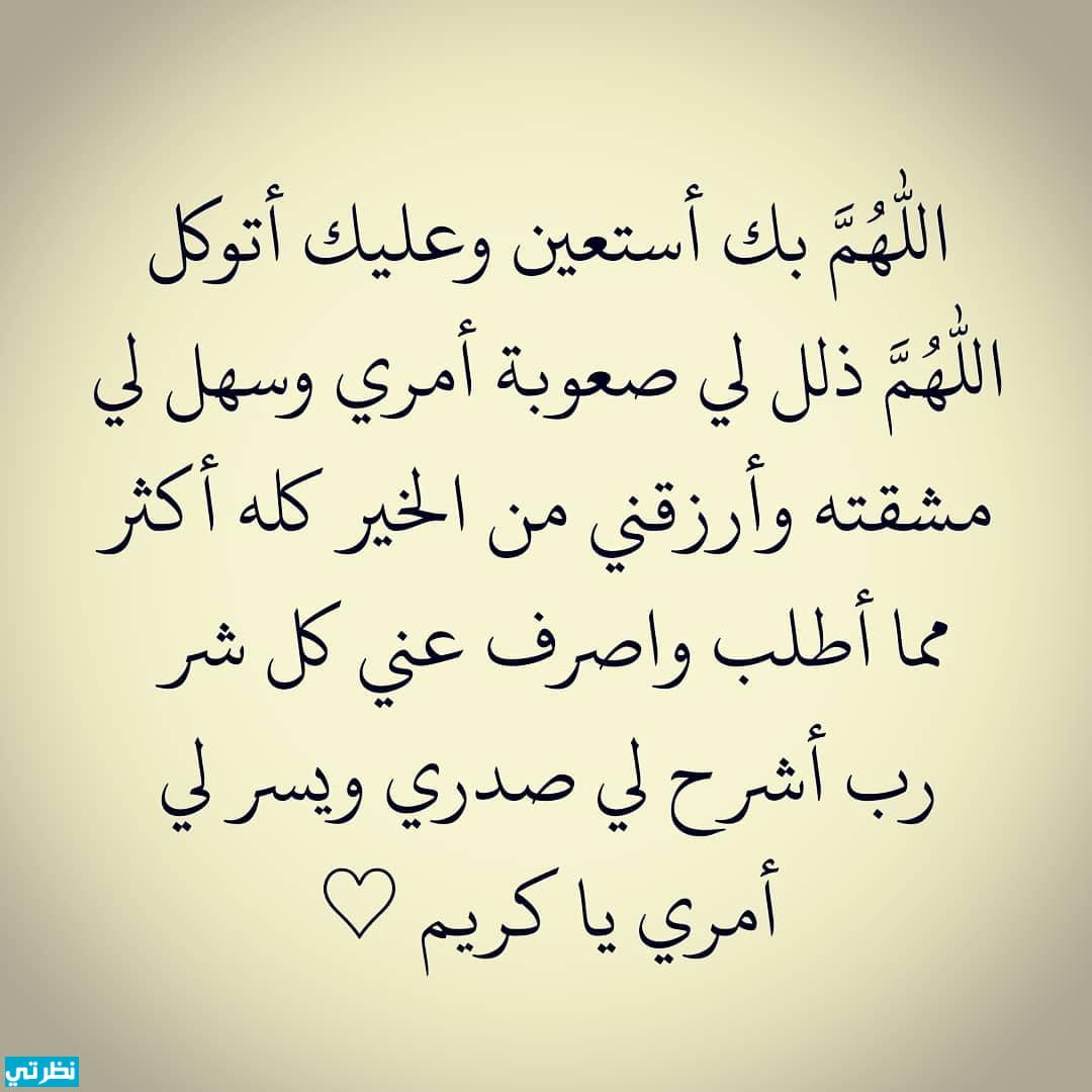 اللهم بك استعين وعليك اتوكل، اللهم ذلل لي صعوبة امري وسهل لي مشقته وارزقني من الخير كله أكثر مما أطلب واصرف عني كل شر ـ رب اشرح لي صدري ـ ويسر لي امري يا كريم اللهم يسر لي الخير حيث كنت وحيث توجهت.