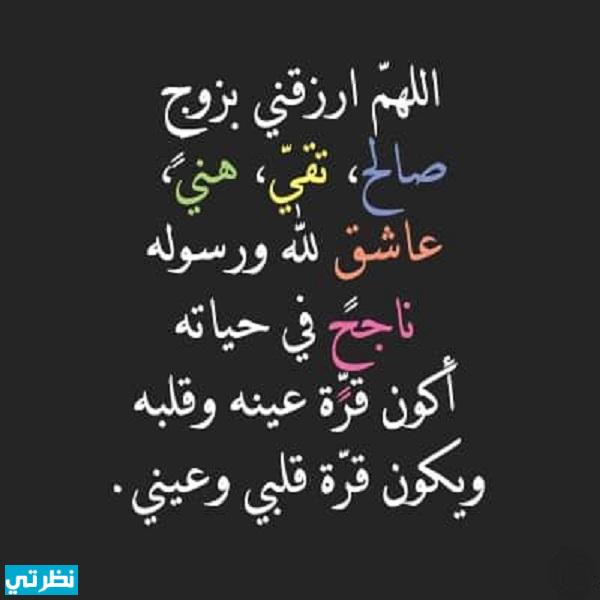 اللهم إني أسألك من فضلك أن تهب لي زوجاً من الصالحين والأبرار تقر به عيني يا خير الرازقين.