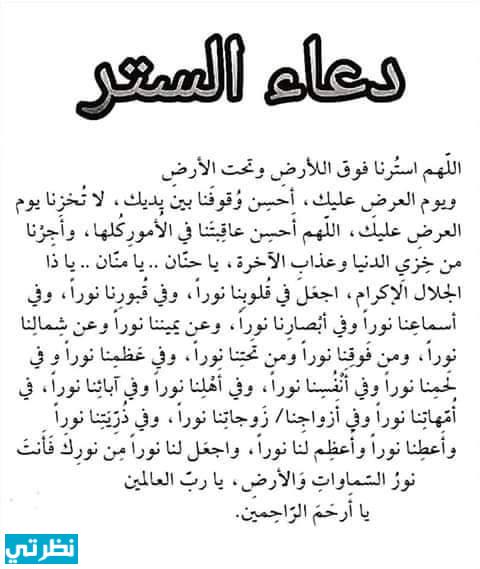 - اللهم استرنا بسترك الجميل الذي سترت به نفسك فلا عين تراك ،و يد تمسك ،و لا تفضحنا بين خلقك ولا تخزنا يوم القيامة اللهم أعل بفضلك كلمة الحق والدين …اللهم استرنا فوق الأرض