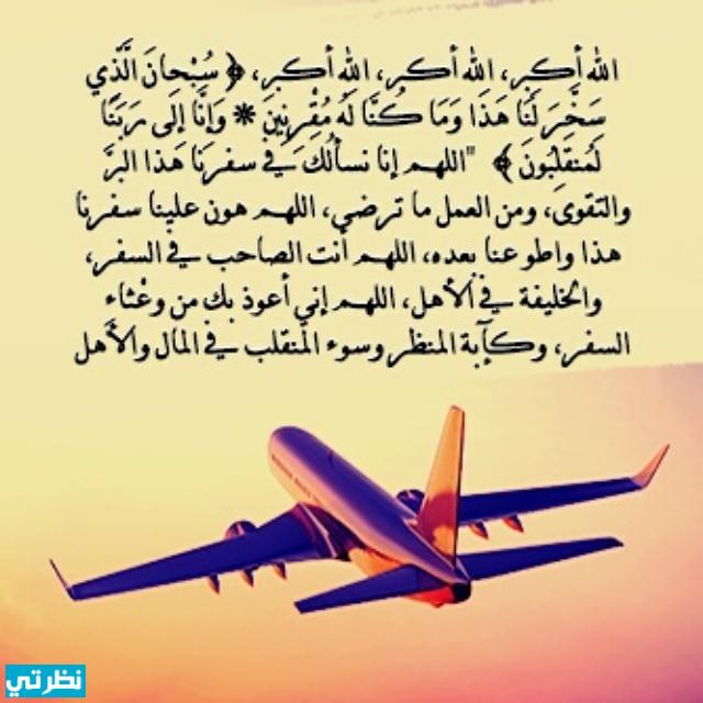 - ” سُبْحانَ الَّذِي سخَّرَ لَنَا هَذَا وَمَا كنَّا لَهُ مُقْرِنينَ، وَإِنَّا إِلى ربِّنَا لمُنْقَلِبُونَ، اللَّهُمَّ إِنَّا نَسْأَلُكَ في سَفَرِنَا هذا البرَّ والتَّقوى، ومِنَ العَمَلِ ما تَرْضى، اللَّهُمَّ هَوِّنْ علَيْنا سفَرَنَا هَذَا، وَاطْوِ عنَّا بُعْدَهُ، اللَّهُمَّ أَنتَ الصَّاحِبُ في السَّفَرِ، وَالخَلِيفَةُ في الأَهْلِ، اللَّهُمَّ إِنِّي أَعُوذُ بِكَ مِنْ وَعْثَاءِ السَّفَرِ، وكآبةِ المَنْظَرِ، وَسُوءِ المُنْقَلَبِ في المالِ والأهلِ وَالوَلَدِ»، وَإِذَا رَجَعَ قَالَهُنّ. وَزَادَ فِيهِنّ: ” آيِبُونَ، تَائِبُونَ، عَابِدُونَ، لِرَبّنَا حَامِدُونَ “