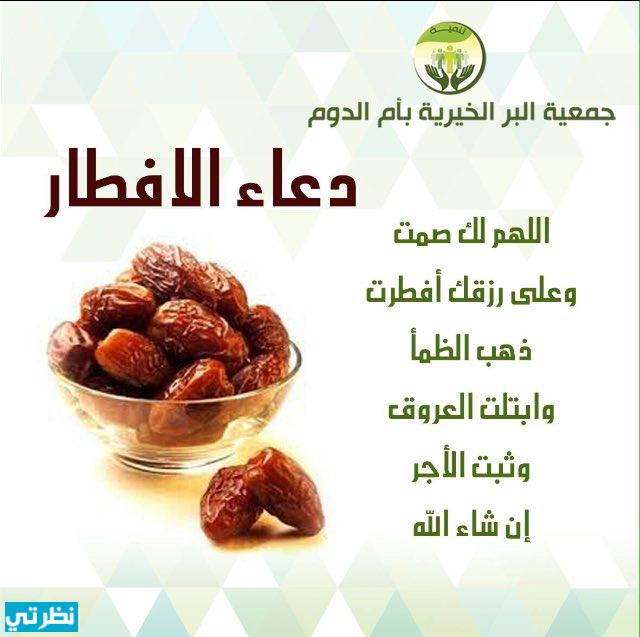 - اللهمَّ لكَ صمتُ، وعلى رِزْقِكَ أفطرتُ “، رواه أبو داود مرسلاً. وعن أنس بن مالك رضي الله عنه، أنّ رسول الله – صلّى الله عليه وسلّم – كان إذا أفطر عند أهل بيت قال لهم:” أفطرَ عندَكمُ الصَّائمونَ، وتنزَّلت عليْكمُ الملائِكةُ، وأَكلَ طعامَكمُ الأبرارُ، وغشيتْكمُ الرَّحمةُ “، رواه أحمد. وكان عبد الله بن عمرو رضي الله عنه إذا أفطر، يقول:” اللهمَّ إني أسألكَ برحمتكَ التي وَسِعَتْ كلَّ شيٍء أن تغفرَ لي ذنوبي “، رواه ابن ماجه، وصحح إسناده الكناني في مصباح الزّجاجة