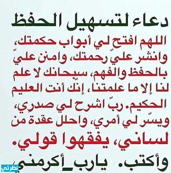 – اللهم صلي وسلم وبارك على سيدنا محمد وآله وصحبه وسلم اللهم يا حي ياقيوم فلا يفوته شئ من علمه ولا يؤوذه حفظه افتح لي أبواب الفهم والحفظ والعلم والعمل به وارزقني القوة وجنبني الخمول والكسل يا الله .