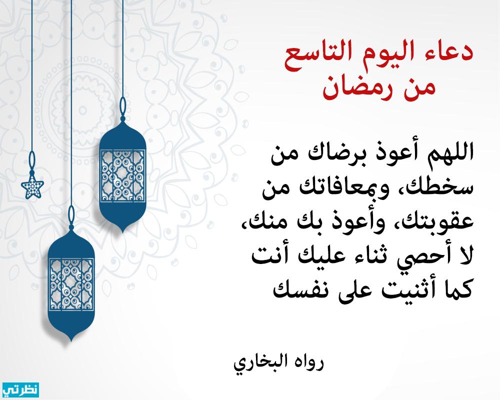 - دعاء اليوم التاسع من رمضان اللهم ما من بابٍ غير بابك أرجوه، وما من ملكٍ تحت ملكك أبغيه، فتقبلني وأعمالي بين عبادك الصَّالحين والمقبولين يا حبيبي يا الله.