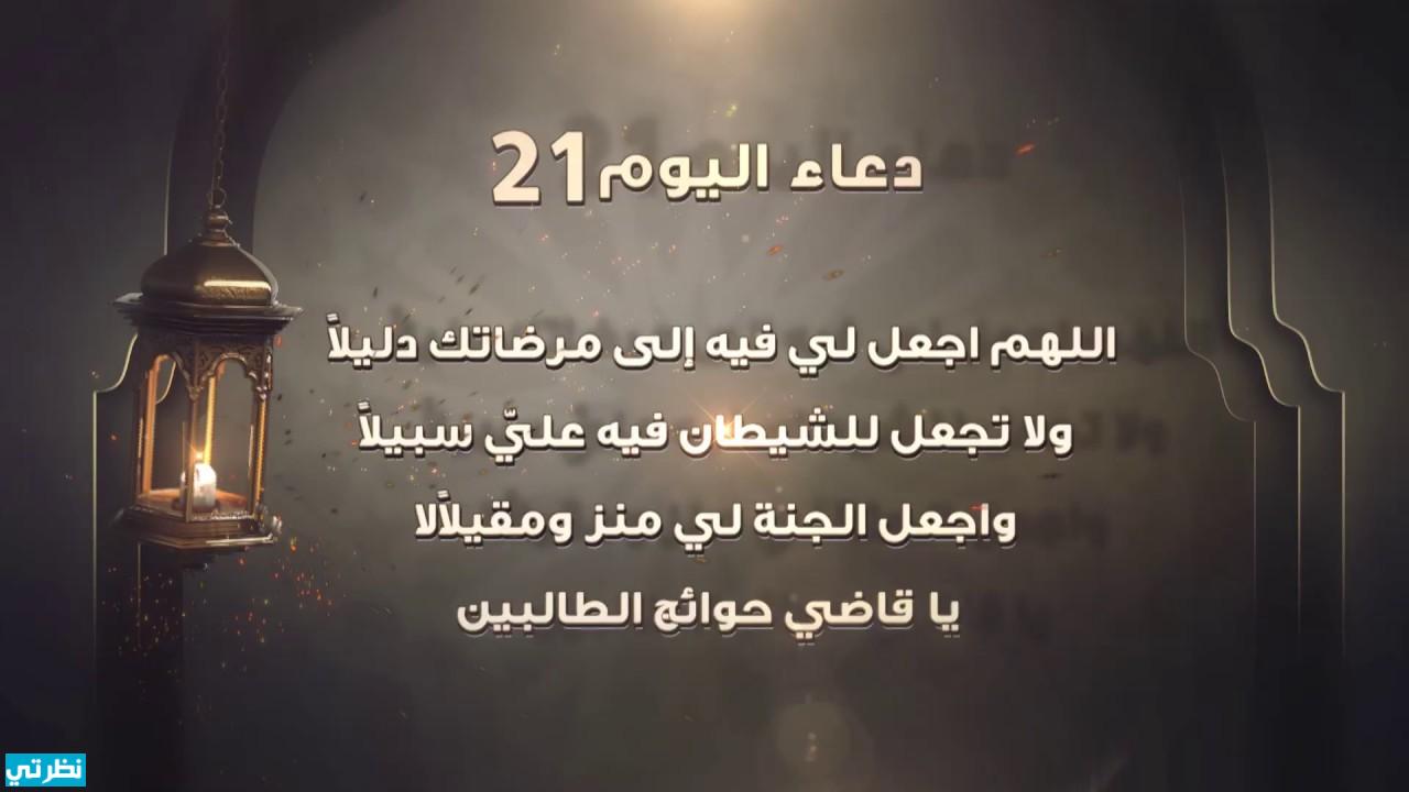 - دعاء اليوم الواحد والعشرين من رمضان اللهم بلغنا ليلة القدر وتقبل من الصيام والقيام وقراءة القرآن واعتق رقابنا من النيران وأسكنا الجنان.