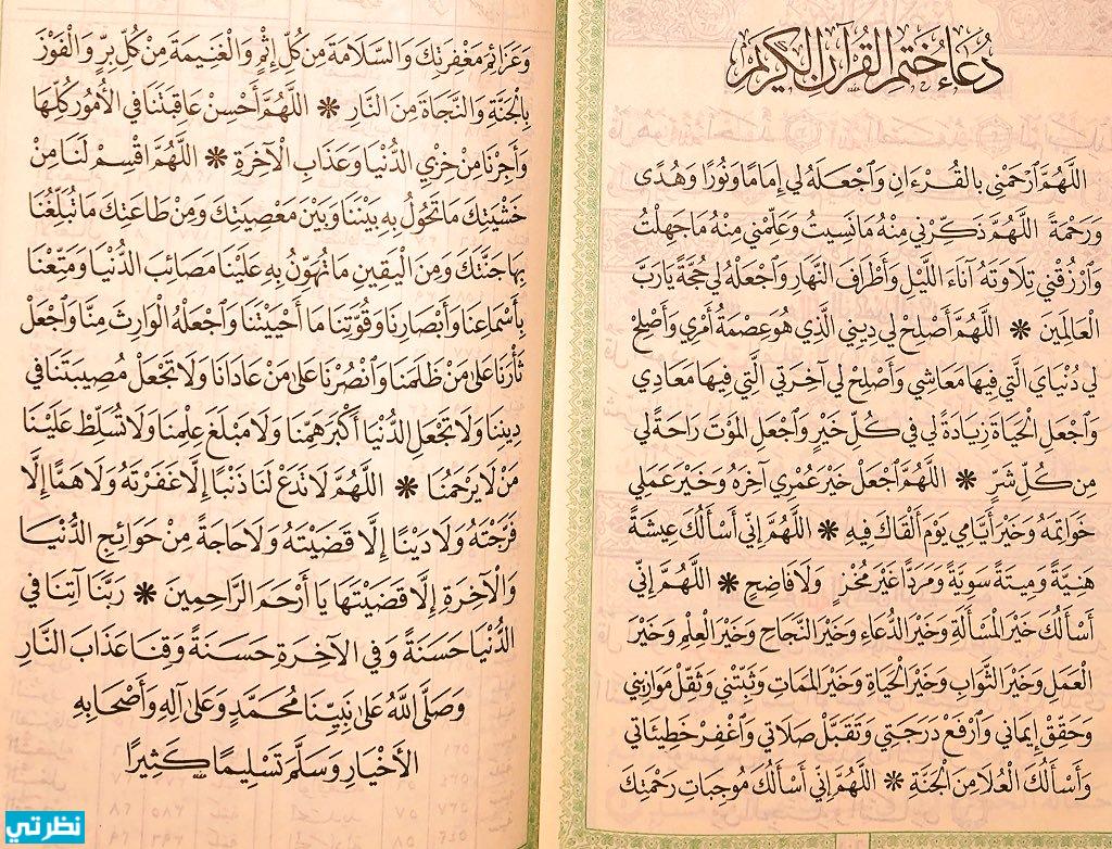 دعاء ختم القرآن الكريم كامل، يعتبر دعاء ختم القرآن الكريم من الأدعية الهامة التي يحرص المسلمون على قراءتها بعد الانتهاء من قراءة القرآن الكريم كاملاً، يتضمن هذا الدعاء توجيه الشكر والثناء لله تعالى على نعمة الإسلام والإيمان، وطلب المغفرة والعتق من النار والدعاء بالخير والبركة في الدنيا والآخرة، يعتبر هذا الدعاء من أفضل الأدعية التي يستجاب لها الدعاء، ويعتبر من أكثر الأدعية التي تعكس الإيمان والتقوى في قلوب المسلمين لذلك، يحرص المسلمون على قراءته وتداوله بين بعضهم البعض، وعليه سنقوم بإرفاق دعاء ختم القرآن الكريم كامل.