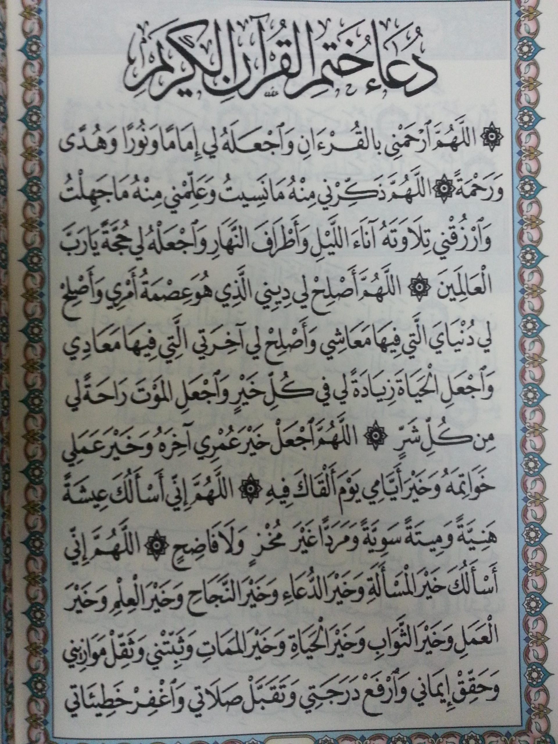 دعاء ختم القرآن الكريم كامل، دعاء ختم القرأن الكريم يوجد في نهاية المصحف ، و يكون في نهايته و مكتوب علية دعاء ختم القران الكريم، و يقوم كل مسلم بقرأة الدعاء بعد الانتهاء من ختم كل اجزاء المصحف، و يكون ذلك الدعاء الذى يوجد في نهاية كل مصحف ، عبارة عن مجموعة من الادعية الرائعة و المميزة ، الذى يدعو بها الانسان ربه بعد الانتهاء من ختم القرأن ليغفر ذنوبة ، يخبرنا القرآن عن آيات الساعة ويوم القيامة وعن الجنة والنار وصورها. كل هذا من السحر الذي لم يأت بعد. القرآن الكريم هو آخر كتاب سماوي نزل بعد إبراهيم عليه السلام.
