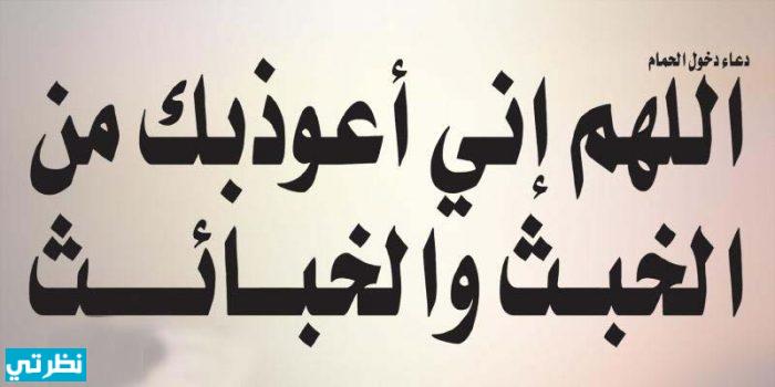 دعاء دخول الحمام: ” بسم الله وبالله أعوذ بالله من الرجس الخبيث المخبث الشيطان الرجيم “.