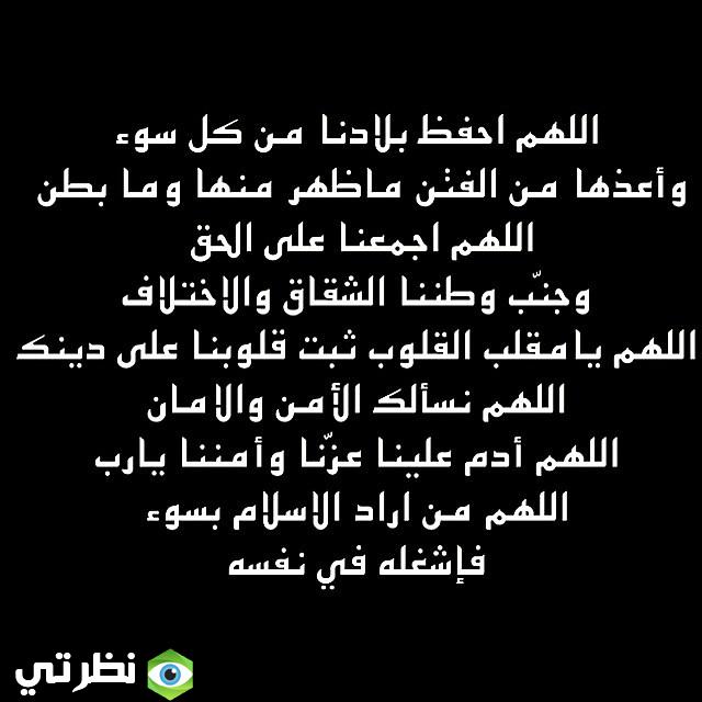 - اللهم إني أسألك أن تحفظ بلدنا الغالية من كل سوء وأن تدم علينا نعمة الأمن والآمان وأن توفق قائدنا لكل ما تحبه وترضاه.