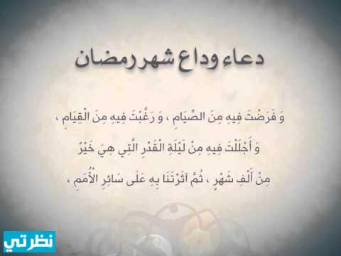 دعاء وداع رمضان اللـهم اسمع دعائي وارحم تضرعي وتذللي لك واستكانتي وتوكلي عليك وانا لك مسلم لا ارجو نجاحا ولا معافاة ولا تشريفا ولا تبليغا الا بك ومنك وامنن علي جل ثناؤك وتقدست اسمائك بتبليغي شهر رمضان وانا معافى من كل مكروه ومحذور من جميع البوائق، الحمد لله الذي اعاننا على صيام هذا الشهر وقيامه حتى بلغني آخر ليلة منه.