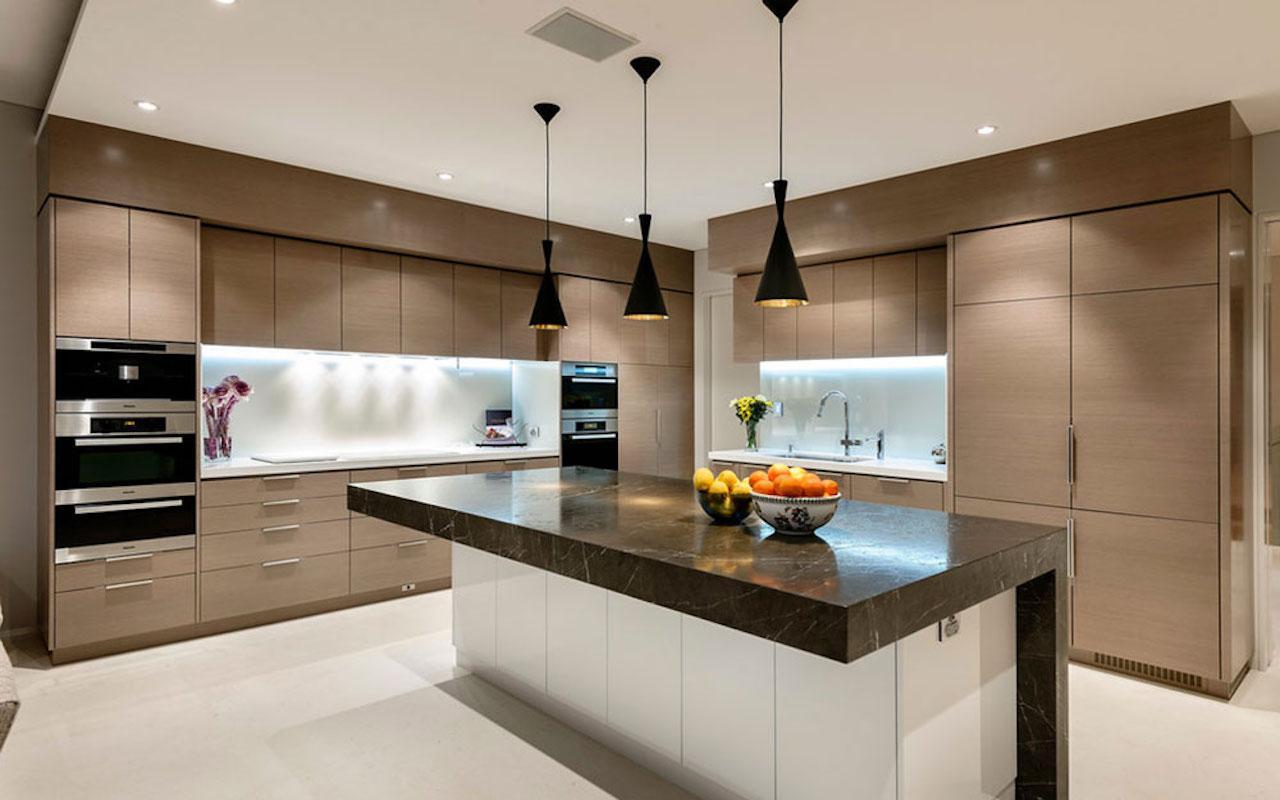 - إذا كنت ترغب في إضافة القليل من البذخ والإثارة إلى ديكور مطبخك ففكر في المطبخ الذي يجمع بين لونين مثل الأبيض واللون البني الفاتح.