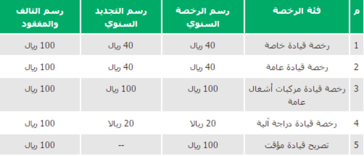 - رسوم تجديد رخصة القيادة العامة أربعون ريال سعودي .