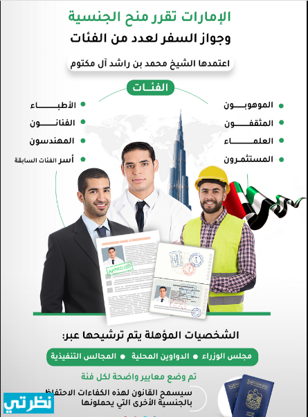 أعلنت دولة الإمارات العربية المتحدة أن الأشخاص الذين يمكنهم الحصول علي الجنسية والجواز الإماراتي هم