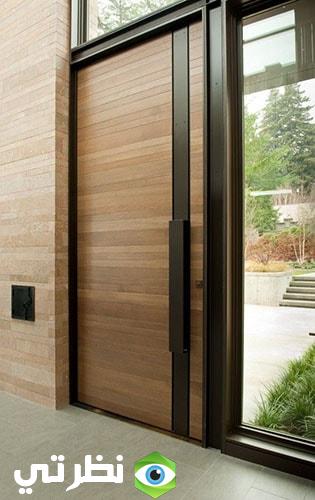 الأبواب الخشبية تضفي جمال وروعة على المكان خاصًا إذا كانت تتميز بالديكورات المبهرة والمتميزة ونلاحظ أن هذه الأبواب التي نستعرضها معًا يتداخل فيها الطراز الكلاسيكي مع الطراز المودرن الحديث مما يضفي جمال وأناقة واللون البني بدرجاته يعطي شكلًا جماليًا رائعًا وكذلك نرى الرسوم الهندسية باللون الأبيض مع الأسود بارعة وأنيقة ، وكذلك نلاحظ أن الباب الخارجي باللونين البني الفاتح مع الأسود يعطي مظهر بديع مع إطلالة الحديقة.