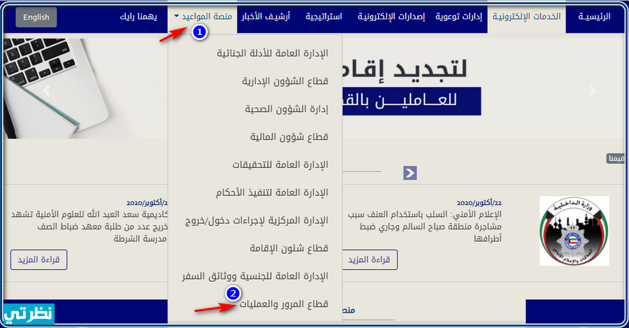- الذهاب الي موقع وزارة الداخلية في الكويت علي شبكة الأنترنت.