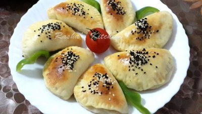 - نقوم بفرد العجينة على لوحة مرشوشة بالدقيق ثم نقسم العجينة إلى وحدات دوائر أو مثلثات ونقوم بحشوها بعدة حشوات مثل حشوها بالجبنة البيضاء أو حشوها بالجبنة الشيدر أو حشوها بالجبنة الموزاريلا.