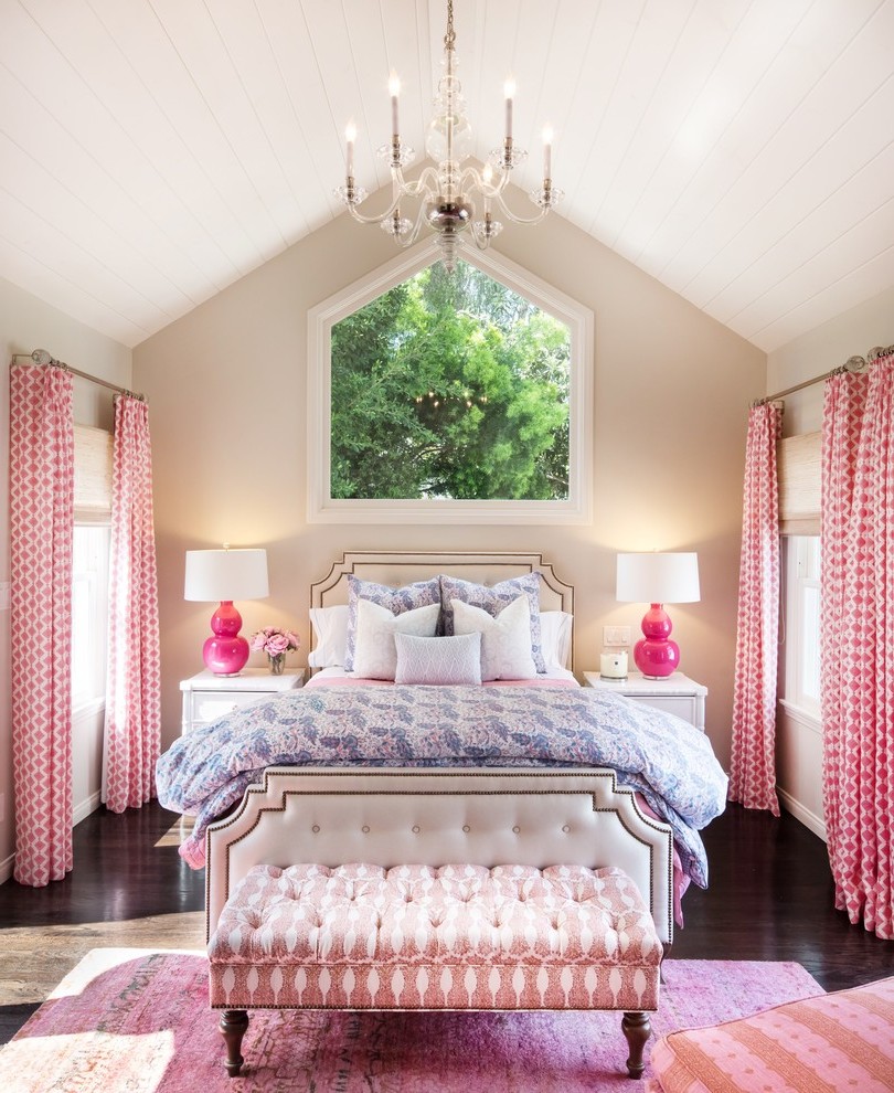 غرفة من اللون الأبيض والبنفسجي والوردي، عبارة عن سريرين السرير العلوي مضاف له سور من الخشب للحماية من السقوط والسرير السفلي به شباك وسلم للصعود، وطاولة على شكل أرفف وعماها كرسيين ومكتب صغير وفوقه أرفف دائرية، وأحد الألوان العصرية وهم الأحمر والأبيض في مساحة صغيرة ومحاولة لتوسيع الغرفة بقدر الإمكان فالغرفة متكونة من سرير علوي وله سلم وأسفله مكتب به ثلاث أدراج وشيزلونج صغير في الزاوية، اللون السيموني والأبيض في تصميم يشبه غرف الأميرات فيكون سرير وبجانبه اثنين كمود بكل كمود درجين وبالحائط المقابل للسرير مرآة وبأسفلها أربع أدراج وفي زاوية الغرفة خزانة بها خمس أدراج مع وجود الستائر التي تعطي شكل مميز للغرفة.