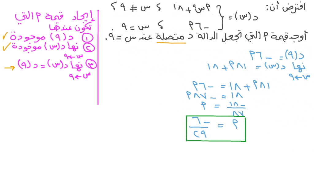 - يجب تعريف د عند النقطه أ فإذا لم يتم تعريفه فهذا يعني أن الطرف الأيسر غير معرف فالنهاية غير متصلة.