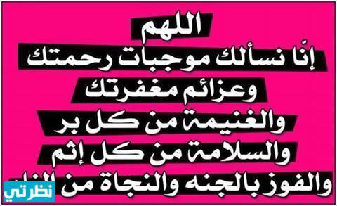 كما يدعو أيضا بــ “لا إله إلا الله الحليم الكريم، سبحان الله رب العرش العظيم، الحمد لله رب العالمين، أسألك موجبات رحمتك، وعزائم مغفرتك، والغنيمة من كل بر، والسلامة من كل إثم، لا تدع لي ذنباً إلّا غفرته، ولا همّاً إلا فرجته، ولا حاجة هي لك رضا إلا قضيتها يا أرحم الراحمين.