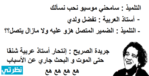 - المدرس : لماذا سمي البحر الأسود بهذا الاسم ؟ الطالب: لأنة حزين على البحر الميت.