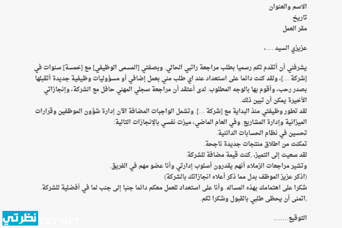 نموذج طلب زيادة راتب من المدير